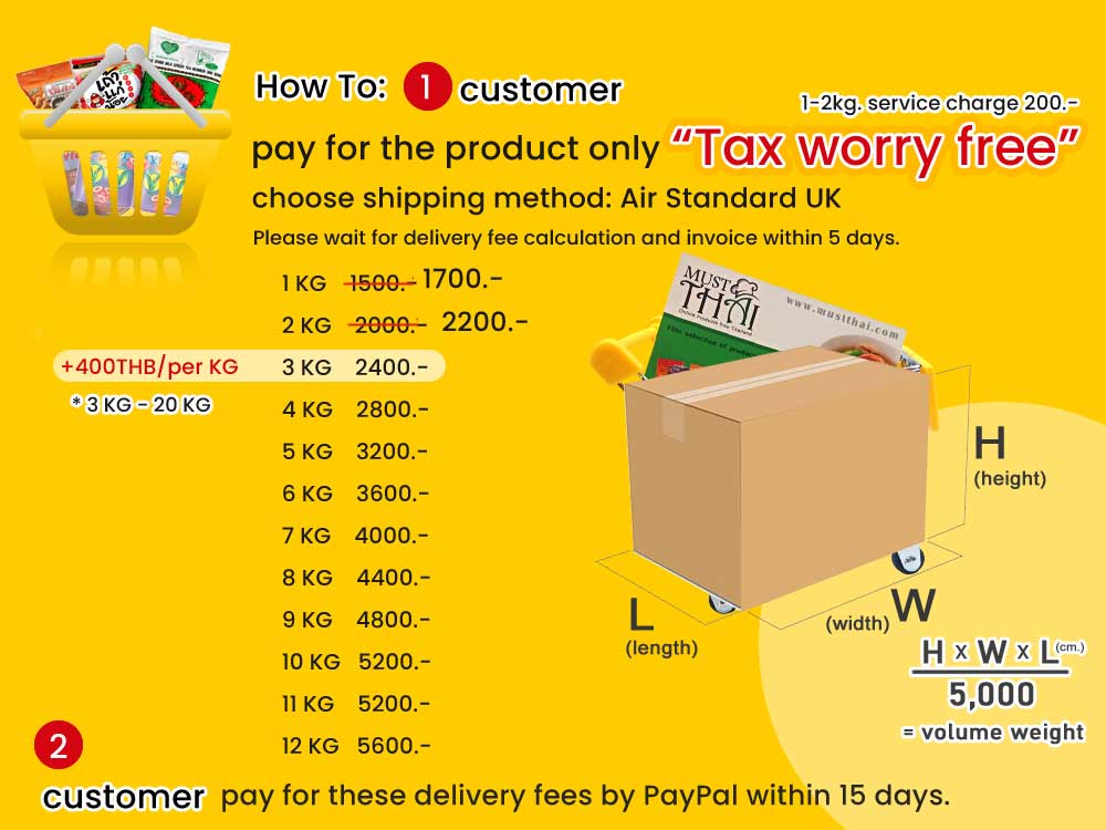 Air Standard UK 400 THB per kg for 3kg and up. Service is recommended as recipients will not have to worry about taxes or any additional service charges. The delivery time is approximately 7-14 days. *If items are held for inspection by the custom, it may take another 20 days.
