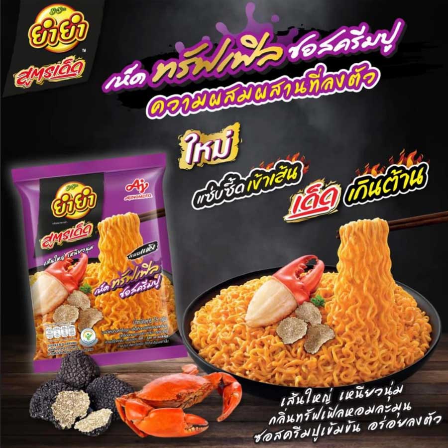 ยำยำ สูตรเด็ด บะหมี่กึ่งสำเร็จรูป กลิ่นเห็ดทรัฟเฟิลซอสครีมปู 75 กรัม แพ็ค 5 ซอง / 7, บซ