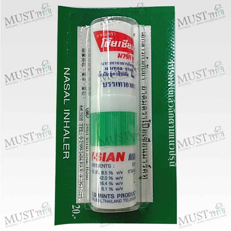 The Poy-Sian Mark II – Thailand Nasal Inhaler is a mixture of essential oils, herbs and salts that can be used as a simple solution to help relieve nasal congestion, refresh the body and mind and also get rid of dizziness and fainting. Inhalers are very popular in Thailand and everyone has at least one. This is due to their convenience and fast action of refreshing the body, mind and curing a wide variety of symptoms.