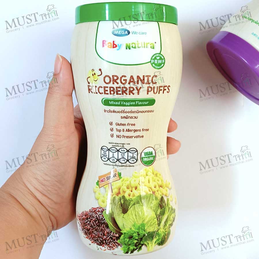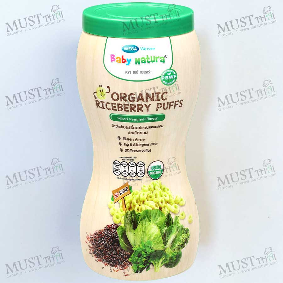 Organic Riceberry Puffs Mixed Veggies flavour. Plant Based whole food ingredients, Gluten Free. Without 8 allergens. No artificial flavor or color. No Preservatives and gluten. Helping you to ” Start Right… For Your Child’s Healthy Future” along with good nutrition and taste, the light texture and small size of puffs makes them a good choice for your child to develop hand-eye coordination and chewing