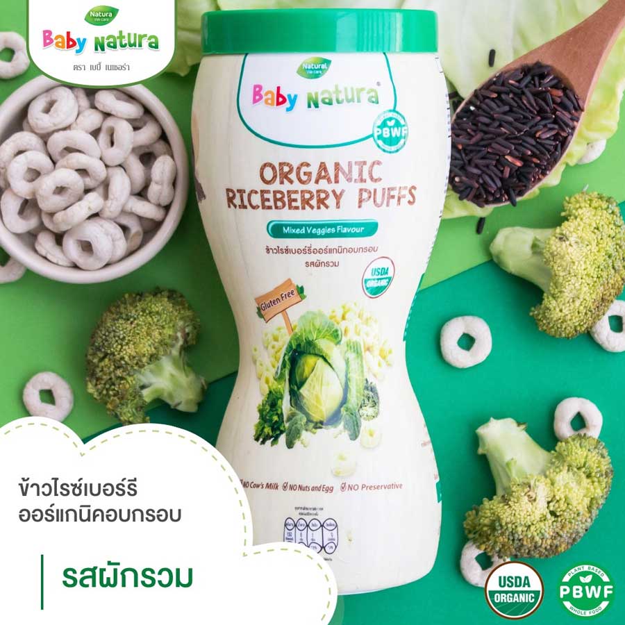 Organic Riceberry Puffs Baby Natura brand. 100% Organic Riceberry crispy snack. For children aged 8 months and over. Enhance your child’s development with this healthy and tasty snack without the risk of developing a sweet tooth. Made from riceberry and mixed with real fruits and vegetables powder to provide a natural taste.