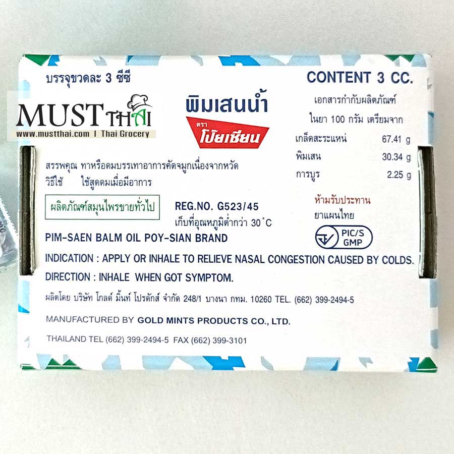 Poy-Sian Pim Saen Balm Oil. Relief of dizzy, giddy, or in a whirl of your head. Clear your airways & clean your breathlessness. Rub your temple on each side.